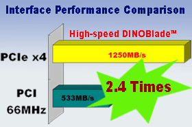 The DINOBlade™, structured with blade-type modules like CPU, I/O application, chassis, backplane and power blades, is the new open standard scalable PCIe and USB 2.0 expandable form factor. It provides users a solid, flexible, compact, speedy and cost-efficient industrial system solution. Based on the DINOBlade™ form factor, users can develop and customize modular blades for a wide range of demanding industrial PC applications including automation, digital surveillance and embedded appliance industrial systems. |