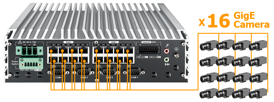 | Quad Core 6th Generation Intel® Xeon®/ Core™ i7/ i5/ i3 (Skylake-H) In-Vehicle Fanless Embedded System with Intel® CM236, 18 GigE LAN with 16 PoE+, 4 Front-access SSD Tray, Isolated DIO, High Performance, Rugged, Extended Temperature |